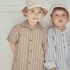 Søt og ensfarget bøttehatt fra HUTTEliHUT, vevd i en lett og pustende blanding av lin og bomull. Perfekt for varme sommerdager – gir god skygge for barnets ansikt og hode samtidig som materialet holder seg sval og behagelig.
