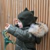 Cuteness overload:) De vakreste luene kommer fra HUTTEliHUT:) Råkul dino-lue i tovet ull, luen er litt ekstra lang bak så her kan mini leke dinosaur og ha det gøy. Varm og vindtett, formsydd så den sitter perfekt på hodet.