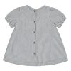 Søt sommerkjole i myk bomull med lett fôr. Kjolen har volangdetaljer foran og bak, og lukkes med knapper bak.