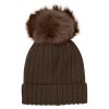 HUTTEliHUT Hat Knit Alpaca Pompom – Dark Brown Melange