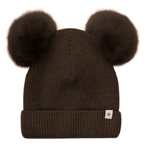 HUTTEliHUT Hat Knit Alpaca Pompoms – Dark Brown Melange