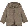 En nydelig jakke i myk ullfleece fra Huttelihut. Jakken har en fast hette med søte bamseører, lange ermer og smale ribbekanter i alle åpninger for en behagelig passform. Den lukkes med glidelås foran, utstyrt med hakebeskyttelse for ekstra komfort. Laget av 100% merinoull som er naturlig varm, pustende og slitesterk.