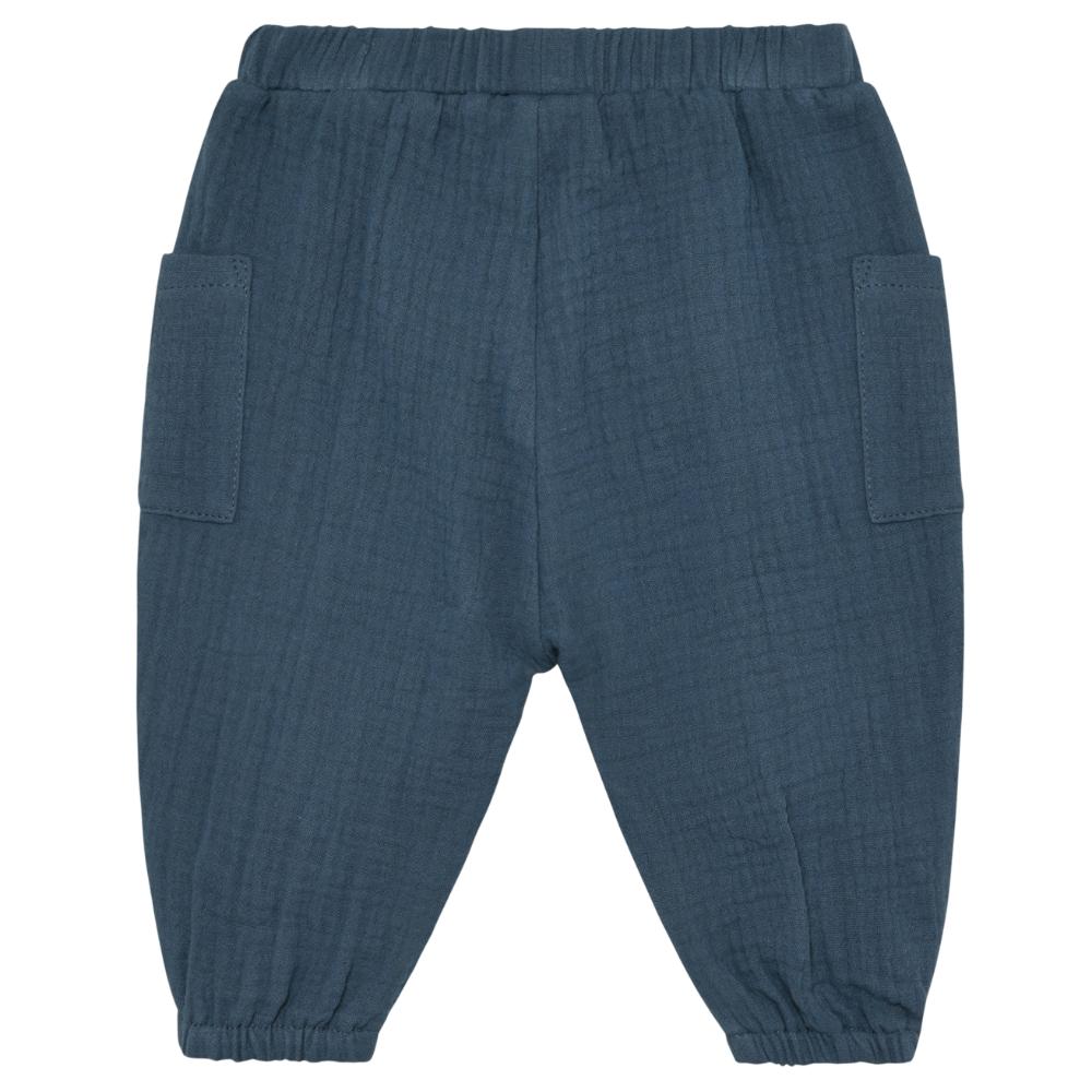 Myke og luftige bukser i bomullsmuslin som føles behagelige mot huden. Modellen har elastikk i livet og ved anklene samt små lommer på sidene.