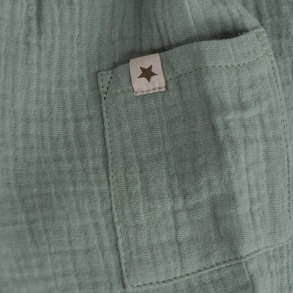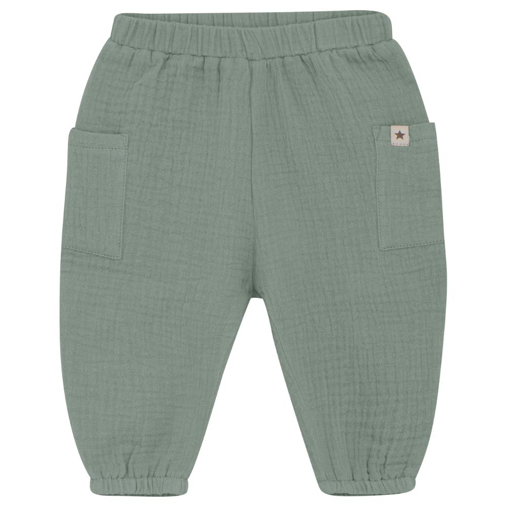 Flotte og myke ensfargede bukser fra HUTTEliHUT, laget i 100% bomullsmuslin som er lett, pustende og behagelig mot barnets hud. Buksene har elastisk linning i livet og ved benåpningene, noe som gir en god og fleksibel passform.