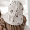 Nydelig solhatt med brem, slep og knyting under haken. Mykt stoff som tåler en runde i sandkassen.
