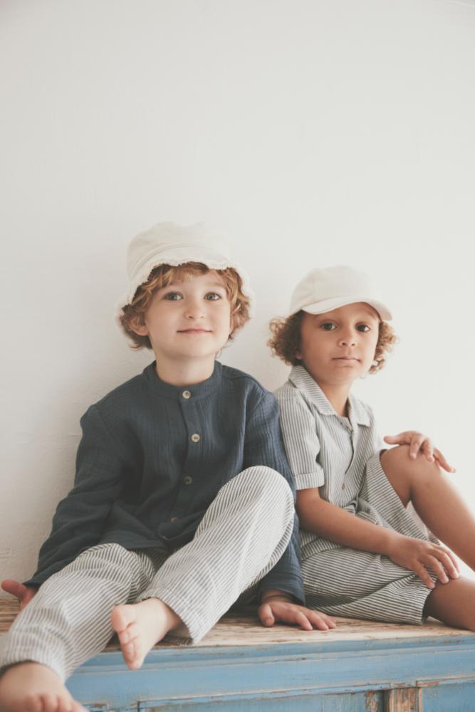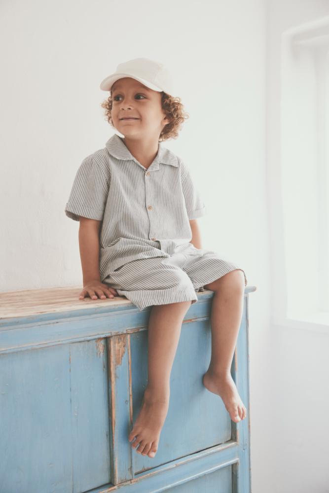Stripet kortermet skjorte i myk bomull med et klassisk uttrykk. Skjorten har krage, oppbrett på ermene og lukkes med knapper foran.