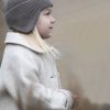 Nydelig kåpe i tovet ull med treknapper, rund krave og lommer. Er fin detalj om kåpen er litt stor; ermene kan fint brettes opp så synes det fine foret.