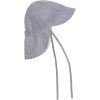 Stripet solhatt i bomull med lett og luftig kvalitet. Hatten har brem foran og ekstra lengde bak for god solbeskyttelse, samt knytebånd for sikker passform. Perfekt til solrike dager med ekstra beskyttelse ☀️