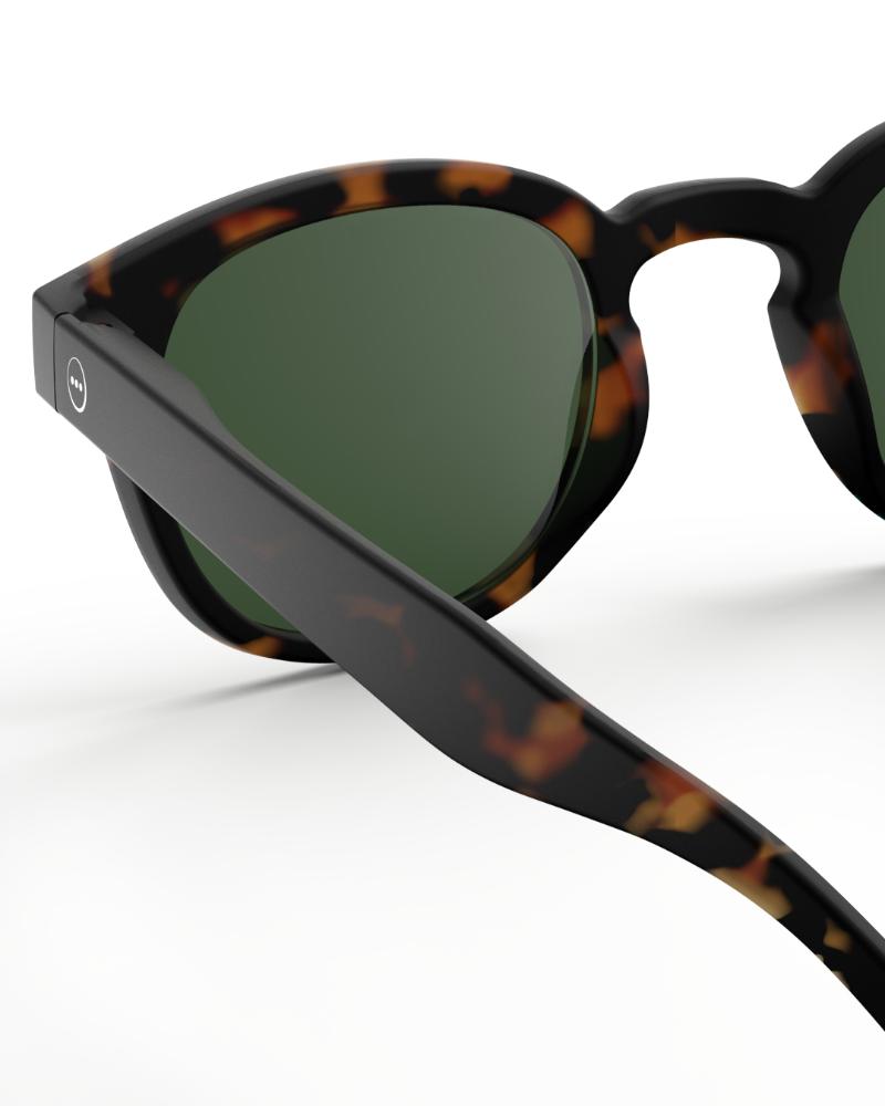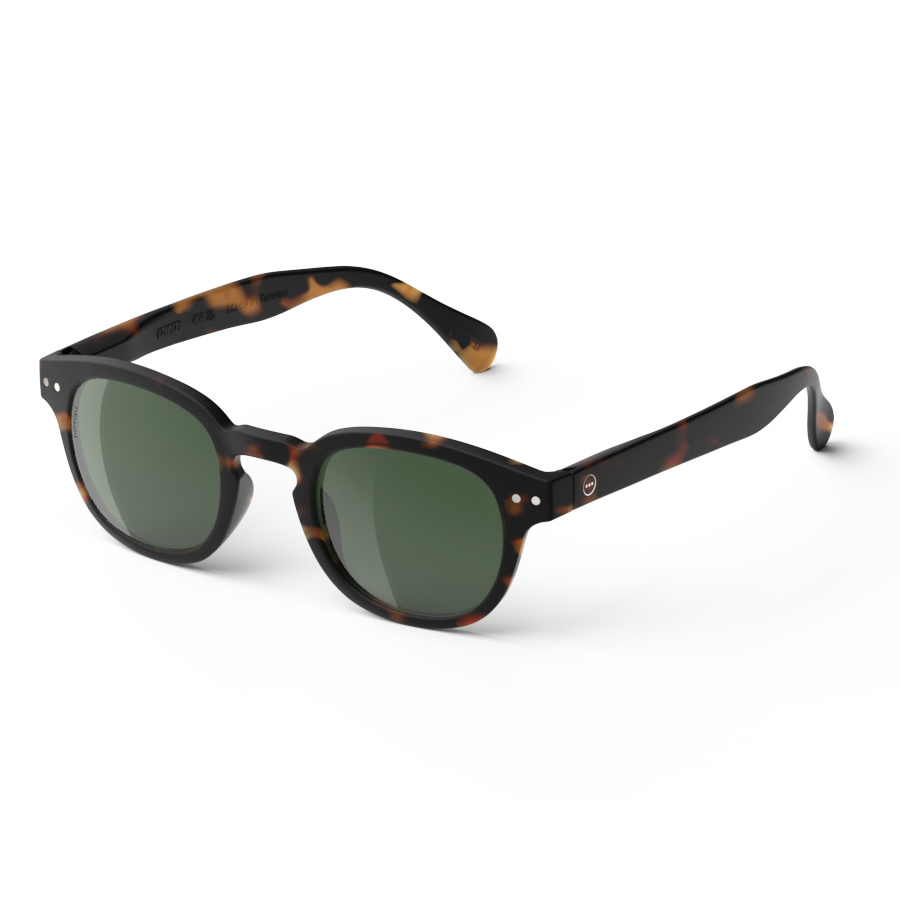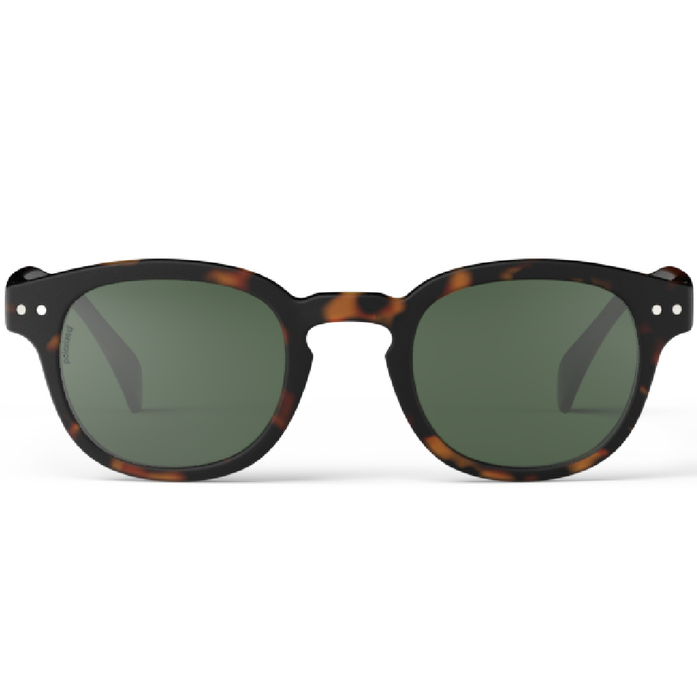 Superkule solbriller til voksne fra IZIPIZI. Modell #C i tortoise er utstyrt med polariserte linser for første gang. For å bevare sin tidløse stil, vil de polariserte glassene beholde den grønne fargen som allerede finnes i fargen tortoise.