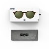 Superkule solbriller til voksne fra IZIPIZI. Modell #D, den klassiske modell, er utstyrt med polariserte linser for første gang. For å bevare sin tidløse stil, vil de polariserte glassene beholde den grønne fargen som allerede finnes i fargen tortoise.