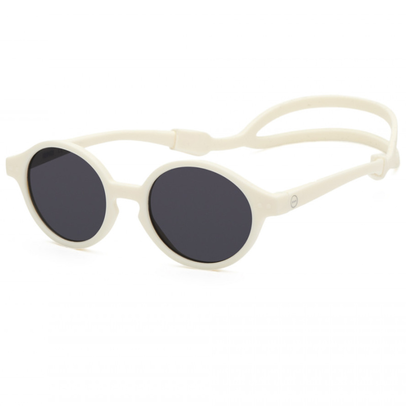 Supersøte solbriller til baby og barn fra franske Izipizi. Myke stenger som er behagelige for små barnehoder. Silikonstropp og etui i filt følger med.