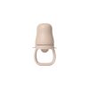 Gjør måltidene både elegante og praktiske med denne fruktmateren i tidløst skandinavisk design. Perfekt i tilvenningsfasen for små barn som skal utforske nye smaker og teksturer på en trygg måte. Den myke og fleksible silikontuppen er skånsom mot babyens tannkjøtt og gir en behagelig spiseopplevelse, mens lokket i polypropylen sørger for hygienisk oppbevaring – også på farten.