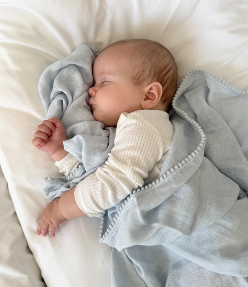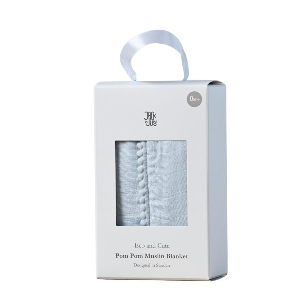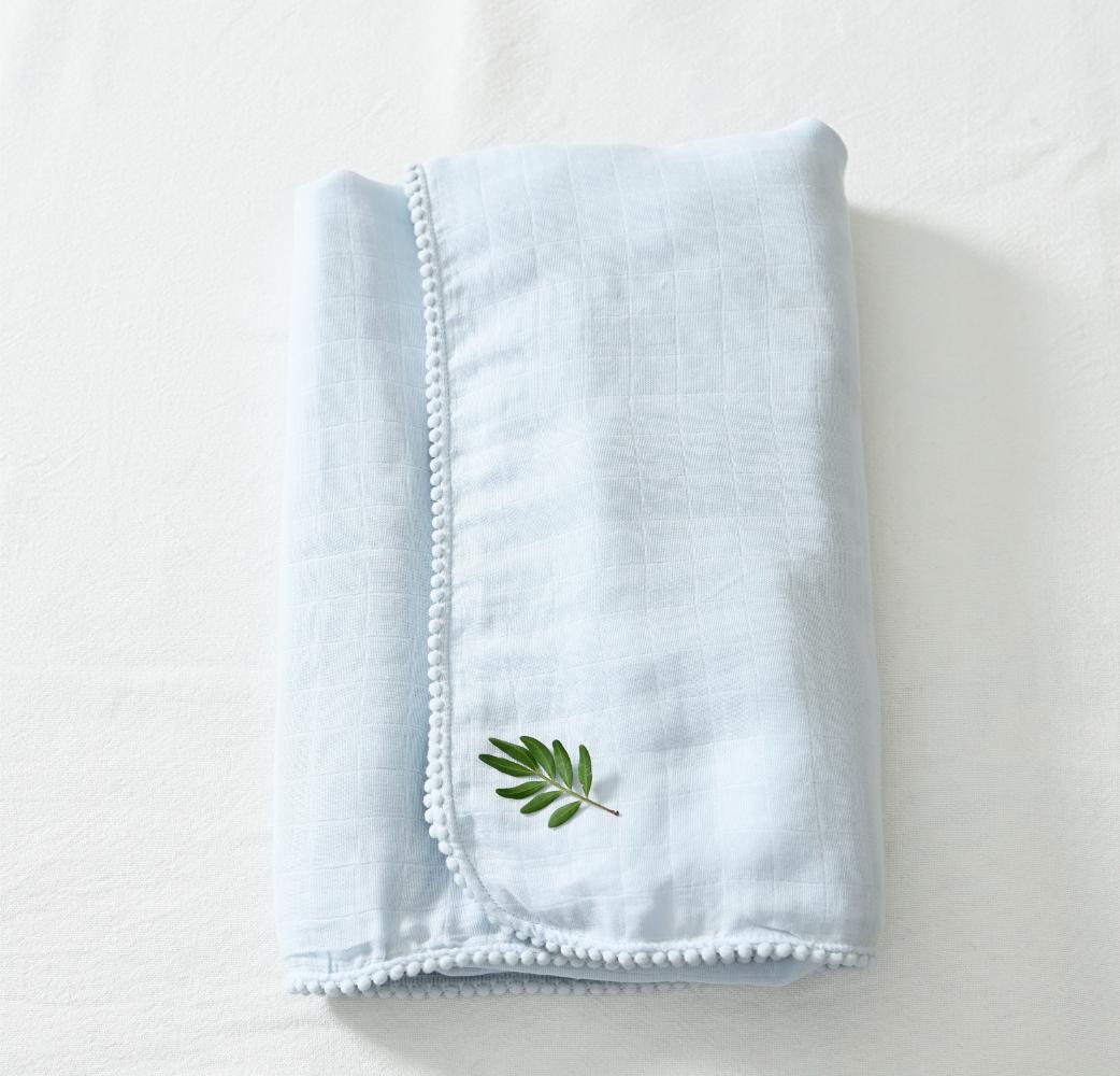 Jack o Juno Pom Pom Muslin Blanket – baby blue