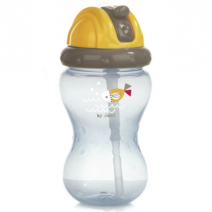 Stilig flaske med sugerør fra Jané hjelper å gjøre overgangen mellom tåteflaske og drikkeflaske enklere. Sugerøret brettes ned når du lukker dekselet, og dermed lekker ikke noe fra flasken.