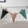 AOS Vimpel-Lommer består av tre dekorative vimpler til barnerommet i 8 oz bomullscanvas. Hver vimpel er en liten lomme hvor du kan oppbevare smokker, tåteflasker og andre småting. KAOS vimpler til barnerom er supert tilbehør å knyte på barnesengen eller på stellebordet. Når barnet er større er vimplene smarte å ha på skrivepulten til blyanter og linjaler. Vimplene monteres ekelt ved å knyte de fast, det eneste du trenger er to punkter punkter å knyte tråden rundt.