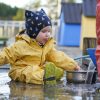 Babyregndress Dugg er laget for de minste barna i ekstra mykt PU-materiale som gir god komfort og bevegelsesfrihet. Dressen er lett vattert (40 g) og holder barnet varmt og tørt på våte og kjølige dager.