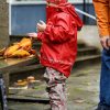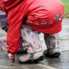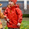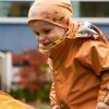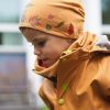 Her har me slitesterk gummistrikk under føtene, refleksar på jakke og bukse, og mykje moro i print og andre detaljar. Sveisa saumar og sikker hette som er både avtagbar og regulerbar.