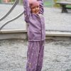 Dette settet har alt, og mer til. Dress i myk slitesterk PU. Her er både jakke og bukse i samme kvalitet, med børstet innside. Det er myk fleece på insiden av kragen og vannstopper på både ermer og ben. Slitesterk gummistrikk under føttene, reflekser på jakke og bukse, og mye moro i print og andre detaljer. Sveisede sømmer og sikker hette som er både avtagbar og regulerbar.