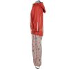 Her har me slitesterk gummistrikk under føtene, refleksar på jakke og bukse, og mykje moro i print og andre detaljar. Sveisa saumar og sikker hette som er både avtagbar og regulerbar.