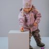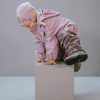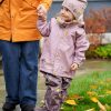 Her har me slitesterk gummistrikk under føtene, refleksar på jakke og bukse, og mykje moro i print og andre detaljar. Sveisa saumar og sikker hette som er både avtagbar og regulerbar.