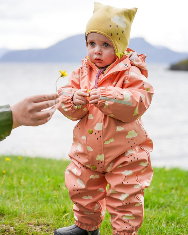 Vårt regntøy er printa for hand og det kan derfor forekomme små variasjonar i printet. Dette påverkar ikkje kvaliteten i regntøystoffet.