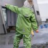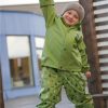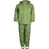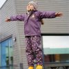 Regnsettet består av både jakke og bukse i samme slitesterke PU-kvalitet med børstet innside. Kragen er fôret med myk fleece, og det er vannstoppere både i ermer og ben for ekstra beskyttelse. Settet har slitesterk gummistrikk under føttene, refleks på både jakke og bukse, samt lekne print og detaljer.