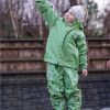 Sveisede sømmer og en sikkerhetshette som er både avtagbar og regulerbar sørger for at barnet holder seg tørt og komfortabelt hele dagen.