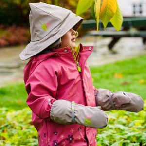 Myke regnvotter i PU med deilig fleecefôr og navnelapp på begge vottene. Holder små hender varme selv om det øser og pøser ned.