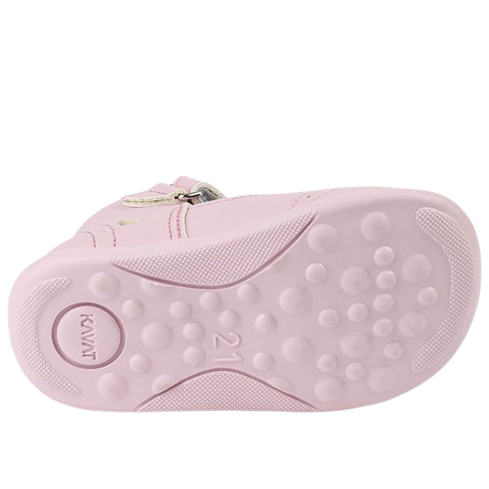 Ängskär er en av sommerens store favoritter til de minste barna. Klassiske og perfekte for de første skritt. Skoene er laget av ekte lær som er behandlet for å være motstandsdyktig mot fukt og flekker samtidig med at de puster og er slitesterke. Innvendig skinnforet og forsterket i både tå og hel. Borrelåslukning gjør det enkelt å ta skoen av og på, og en fotriktig lest gjør at skoen passer de aller fleste føtter. Myk og støtdempende innersåle som puster, og gummisåle for beste grep. Som alle andre Kavat-sko er også disse fri for teflon, PTFE og andre skadelige stoffer. Normal passform, skoene skal være 1-1,5 cm lengre enn foten når de tas i bruk.
