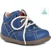 Miljømerkede økologiske gåsko for de første skrittene. Skoene er laget av krom-fritt, vanntett og miljøvennlig skinn. Den glatte modellen gir god støtte rundt ankelen og snøringen gjør at skoen passer perfekt på de fleste føtter. Skinnforet og forsterket tå og hæl for overlegen beskyttelse for små føtter. Uttakbar innersåle i skinn og støtdempende mellomsåle for ekstra komfort. Det går også utmerket å bruke skoen uten den løse innersålen. Gummisåle for beste grep. Normal passform. Merk at blåfargen kan variere fra den som er avbildet og til litt mørkere blå.