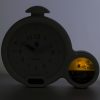 Klokken har store tall og klare visere, på urskiven er det også en viser med innovervendt trekant som viser alarm/stå-opp tiden, det er digital klokke rett under urskiven slik at både store og små lett kan se både analog og digital tid.