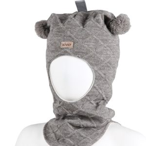 KiVAT balaklava ull rutemønster med logo – beigemelert ufarget
