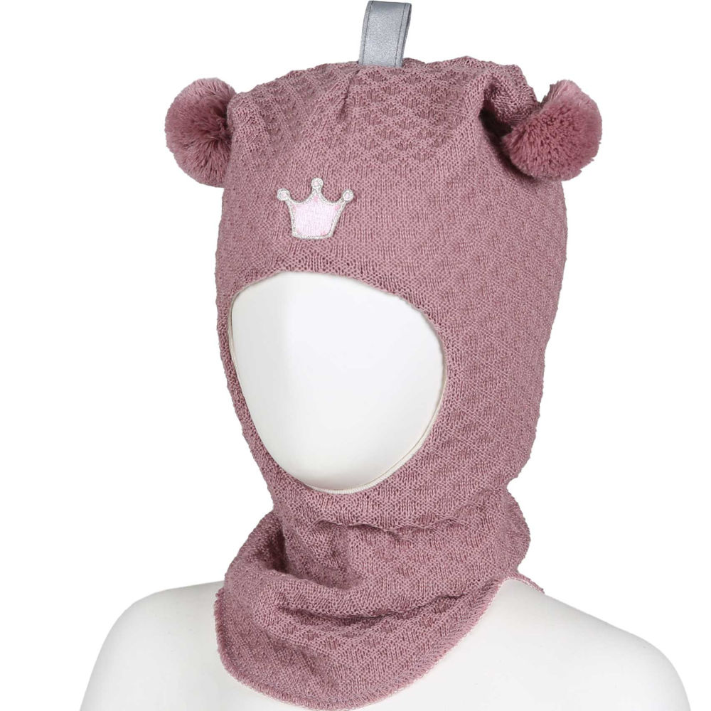 KiVAT balaklava ull med krone, waffle knit – gammelrosa