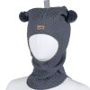 Supersøt balaklava i ull med refleksbånd og to runde dusker. Luen er myk og varm med ekstra vattering i pannen og vindstopper over ørene. Perfekt på kalde vinterdager, passer godt i barnehagen.
