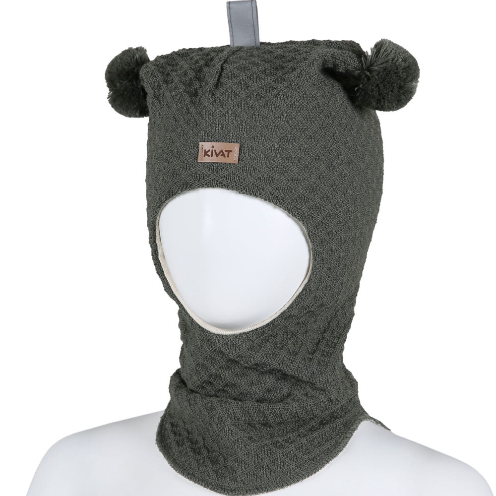 KiVAT balaklava ull med logo, waffle knit – mosegrønn