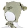 KiVAT vårlue i økologisk bomull med vindstopper og dinosaur – oliven