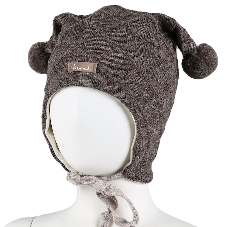 KiVAT jokerlue ull mønsterstrikket med logo – brun