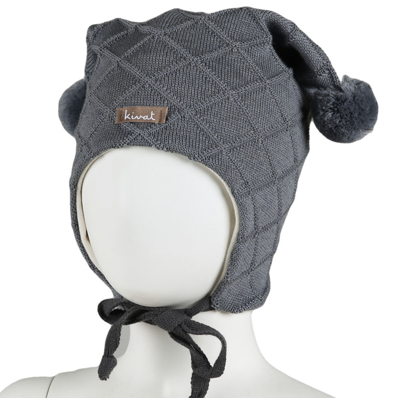 KiVAT jokerlue ull mønsterstrikket med logo – koksgrå
