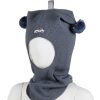 Supersøt balaklava i ull med refleksbånd og to runde dusker. Luen er myk og varm med ekstra vattering i pannen og vindstopper over ørene. Perfekt på kalde vinterdager, passer godt i barnehagen.