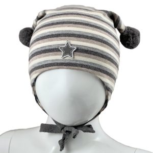 KiVAT stripete vårlue stjerne – sand/beige/gråmelert