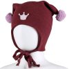 Myk vårlue med to runde dusker. Luen dekker ørene godt, har windstopper, knyting under haken og skinnlogo i pannen.