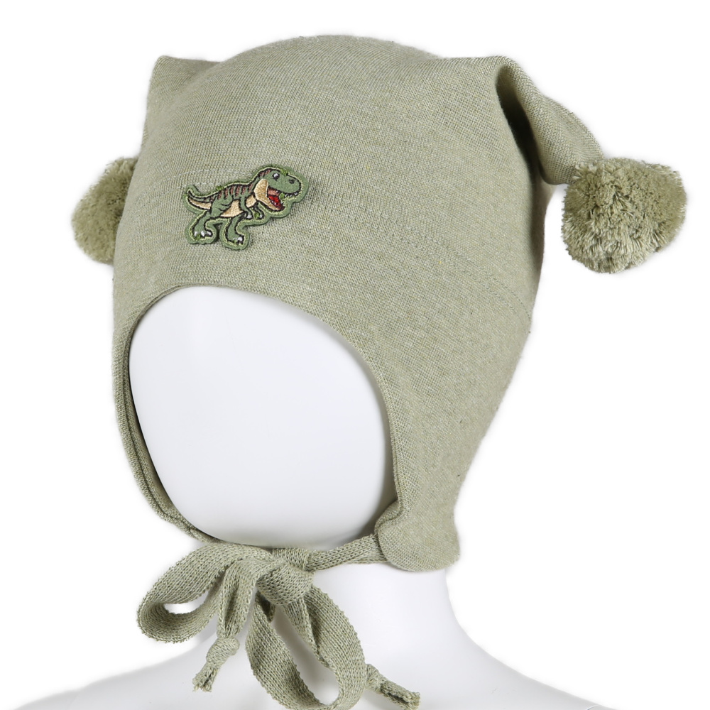 KiVAT vårlue med vindstopper og dinosaur – mosegrønn
