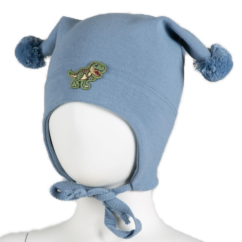 KiVAT vårlue med vindstopper og dinosaur – dueblå
