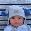 Myk vårlue med to runde dusker i kontrastfarge. Luen dekker ørene godt, har windstopper, knyting under haken og krone i pannen.