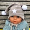 Myk vårlue med to runde dusker. Luen dekker ørene godt, har windstopper, knyting under haken og rev i pannen.