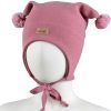 Myk vårlue med to runde dusker i kontrastfarge. Luen dekker ørene godt, har windstopper, knyting under haken og skinnlogo i pannen.