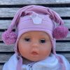 Myk vårlue med to runde dusker. Luen dekker ørene godt, har windstopper, knyting under haken og stjernerefleks.