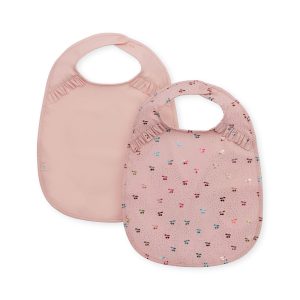 Konges Sløjd 2pk dinner bib with frill – fairy cherry/cameo rose
