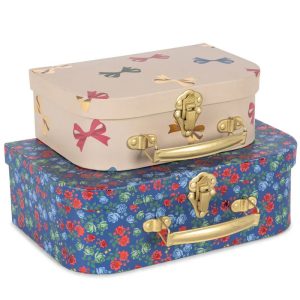 Sett med to nydelige lekekofferter i papp med metallhåndtak – perfekt til små skatter, leker og favoritting! Den minste kofferten passer inni den største, slik at de enkelt kan stables og oppbevares sammen.