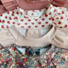 Konges Sløjd 2pk dinner bib with sleeves and frill – coeur rouge